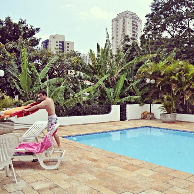 Chilling out by the pool is his regular weekend relaxation